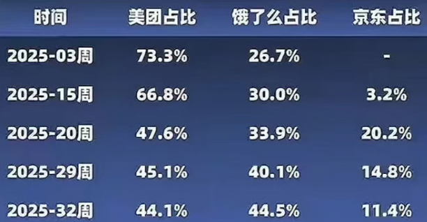 周末最大的新闻是阿里的财报,以及阿里要下场做AI芯片这个事情。网上流传了一个图,说是外卖市场份额占比的变化图,这个数据不一定准啊,不过应该也是大差不差!美团市场份额下降的厉害,饿了么上升一大截,京东维持老3,差不多就这么一个格局。而且,后面阿里还准备继续补贴打价格战的,因为阿里不靠这个赚钱,现阶段主要还是抢占市场!